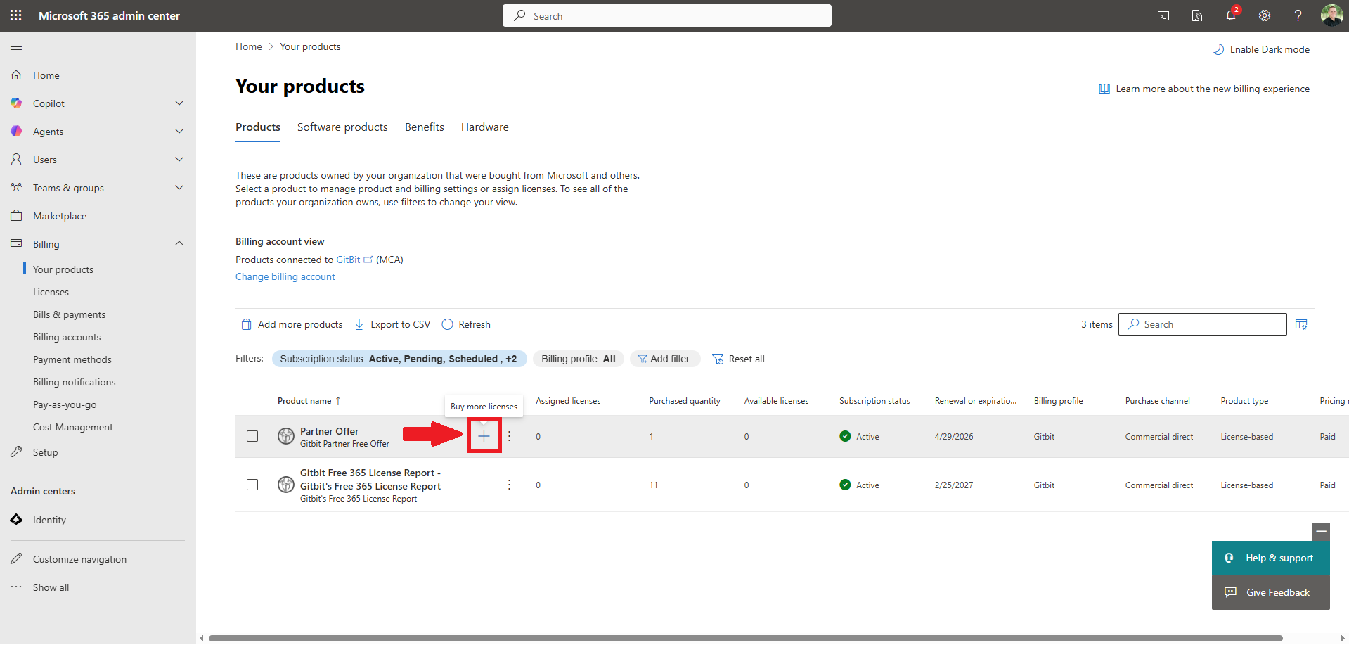 Once you've made your first purchase, you can easily add additional licenses by going back through the Microsoft Marketplace, or you can edit your original purchase.